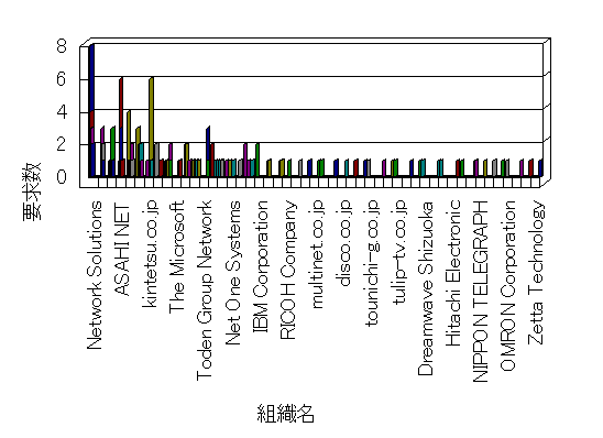 組織ユーザーにインターネット接続を提供する、商用または非営利団体、学術・行政機関などの、インターネット ドメイン で識別される団体や組織です。Microsoft Site Server Analysis は同じ組織に登録されたすべてのドメインを 1 つの組織としてグループ化します。ドメインがデータベースで使用できない場合は、1 つのインターネット ドメインが 1 つの組織を識別するのに使用されます。
