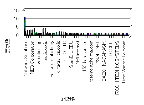 組織ユーザーにインターネット接続を提供する、商用または非営利団体、学術・行政機関などの、インターネット ドメイン で識別される団体や組織です。Microsoft Site Server Analysis は同じ組織に登録されたすべてのドメインを 1 つの組織としてグループ化します。ドメインがデータベースで使用できない場合は、1 つのインターネット ドメインが 1 つの組織を識別するのに使用されます。