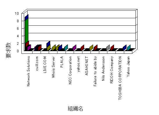 組織ユーザーにインターネット接続を提供する、商用または非営利団体、学術・行政機関などの、インターネット ドメイン で識別される団体や組織です。Microsoft Site Server Analysis は同じ組織に登録されたすべてのドメインを 1 つの組織としてグループ化します。ドメインがデータベースで使用できない場合は、1 つのインターネット ドメインが 1 つの組織を識別するのに使用されます。