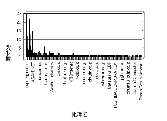 組織ユーザーにインターネット接続を提供する、商用または非営利団体、学術・行政機関などの、インターネット ドメイン で識別される団体や組織です。Microsoft Site Server Analysis は同じ組織に登録されたすべてのドメインを 1 つの組織としてグループ化します。ドメインがデータベースで使用できない場合は、1 つのインターネット ドメインが 1 つの組織を識別するのに使用されます。
