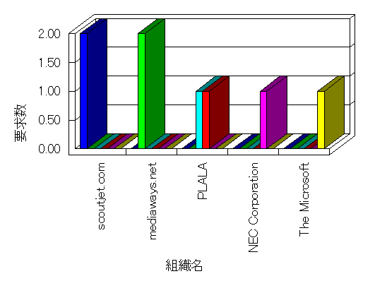 組織ユーザーにインターネット接続を提供する、商用または非営利団体、学術・行政機関などの、インターネット ドメイン で識別される団体や組織です。Microsoft Site Server Analysis は同じ組織に登録されたすべてのドメインを 1 つの組織としてグループ化します。ドメインがデータベースで使用できない場合は、1 つのインターネット ドメインが 1 つの組織を識別するのに使用されます。