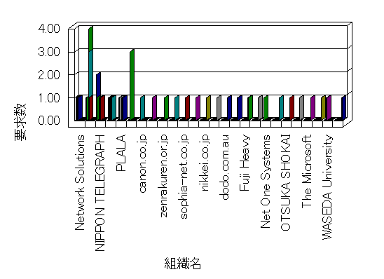 組織ユーザーにインターネット接続を提供する、商用または非営利団体、学術・行政機関などの、インターネット ドメイン で識別される団体や組織です。Microsoft Site Server Analysis は同じ組織に登録されたすべてのドメインを 1 つの組織としてグループ化します。ドメインがデータベースで使用できない場合は、1 つのインターネット ドメインが 1 つの組織を識別するのに使用されます。