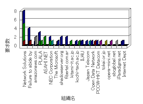 組織ユーザーにインターネット接続を提供する、商用または非営利団体、学術・行政機関などの、インターネット ドメイン で識別される団体や組織です。Microsoft Site Server Analysis は同じ組織に登録されたすべてのドメインを 1 つの組織としてグループ化します。ドメインがデータベースで使用できない場合は、1 つのインターネット ドメインが 1 つの組織を識別するのに使用されます。