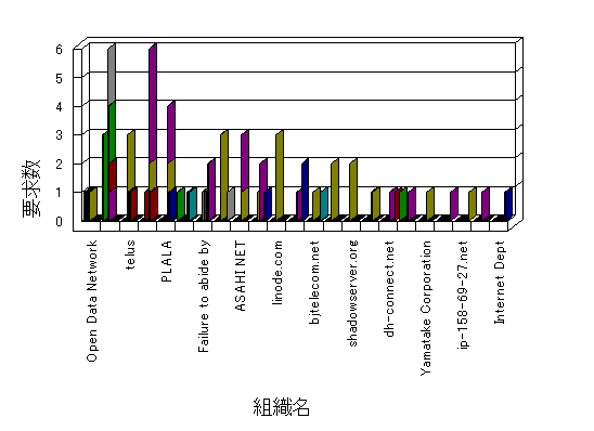 組織ユーザーにインターネット接続を提供する、商用または非営利団体、学術・行政機関などの、インターネット ドメイン で識別される団体や組織です。Microsoft Site Server Analysis は同じ組織に登録されたすべてのドメインを 1 つの組織としてグループ化します。ドメインがデータベースで使用できない場合は、1 つのインターネット ドメインが 1 つの組織を識別するのに使用されます。