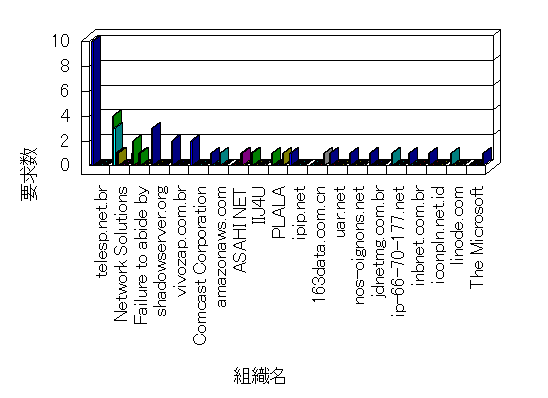 参照組織のサイトには、このサイトにリンクするページがあります。グラフでは、このサイトへのアクセス数に基づいた、上位 10 組織を示します。
